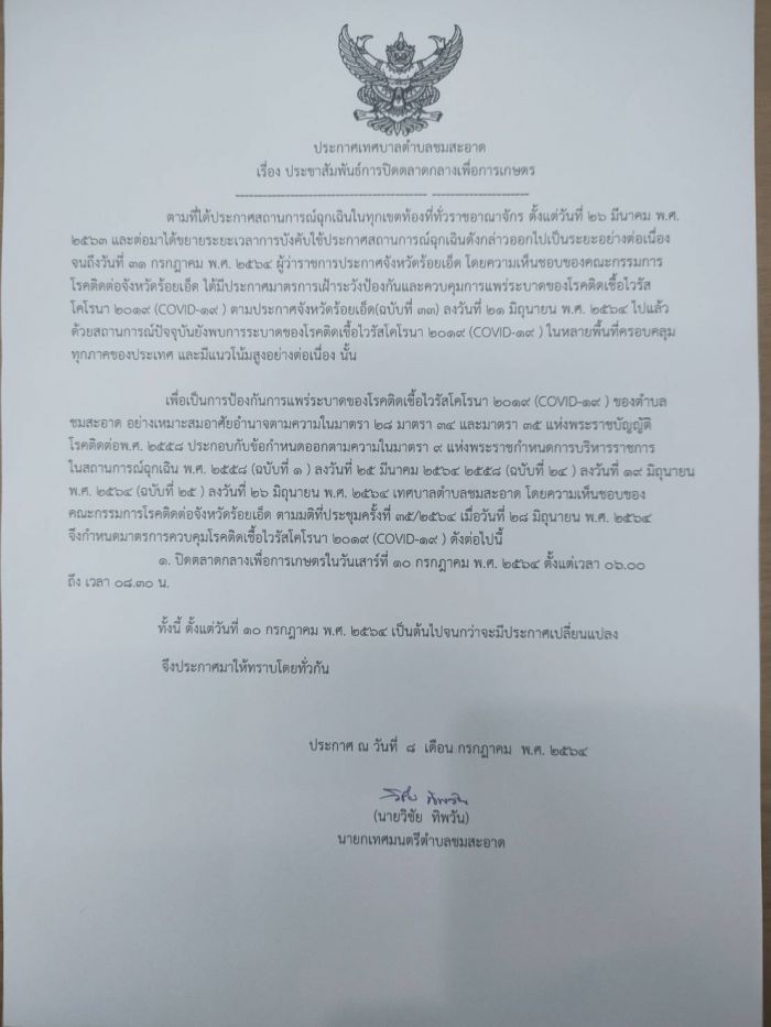 หัวข้อ :: ประชาสัมพันธ์การปิดตลาดกลางเพื่อการเกษตร