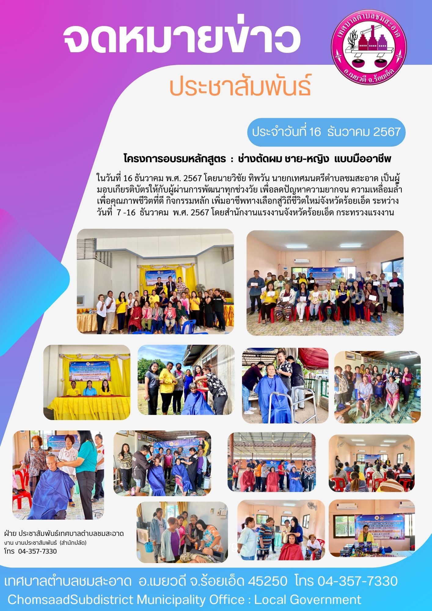 หัวข้อ :: โครงการอบรมหลักสูตร ช่างตัด ผมชาย-หญิง แบบมืออาชีพ